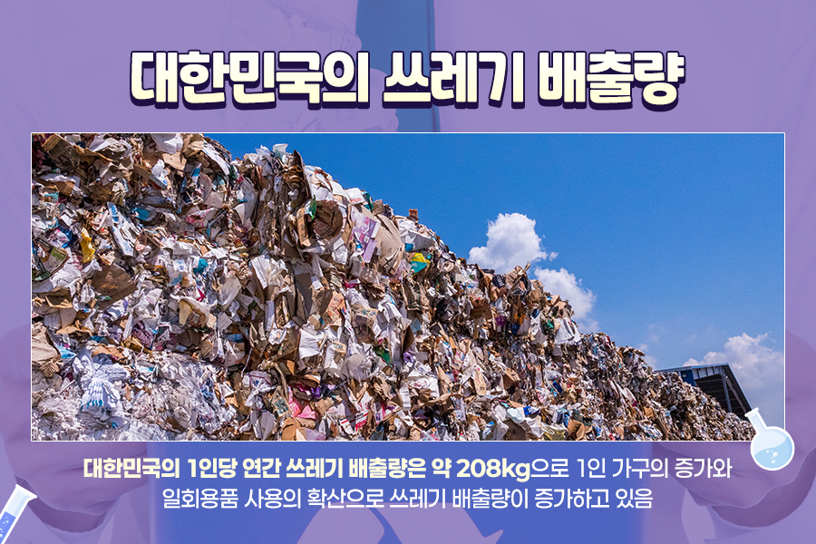 특히 1인 가구의 증가와 배달 문화, 일회용품 사용의 확산으로 쓰레기 배출량이 더욱 늘어나고 있습니다. 또한 수도권의 쓰레기 매립지는 2026년 이후 포화 상태에 이를 것으로 예상되고 있죠. 그래서 쓰레기 문제가 사회적으로 큰 이슈에 오르고 있는 것입니다.
