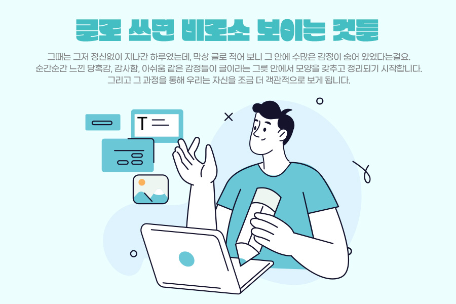 글을 써 보면 알게 됩니다. 그때는 그저 정신없이 지나간 하루였는데, 막상 글로 적어 보니 그 안에 수많은 감정이 숨어 있었다는걸요. 순간순간 느낀 당혹감, 감사함, 아쉬움 같은 감정들이 글이라는 그릇 안에서 모양을 갖추고 정리되기 시작합니다. 그리고 그 과정을 통해 우리는 자신을 조금 더 객관적으로 보게 됩니다. “그땐 왜 그렇게 화가 났을까?”, “그때 내 안엔 어떤 두려움이 있었을까?” 이렇게 한 걸음 떨어져서 자신을 돌아보는 힘도 글쓰기에서 비롯됩니다. 그 힘은 나를 더 단단하게 만들어 줍니다.