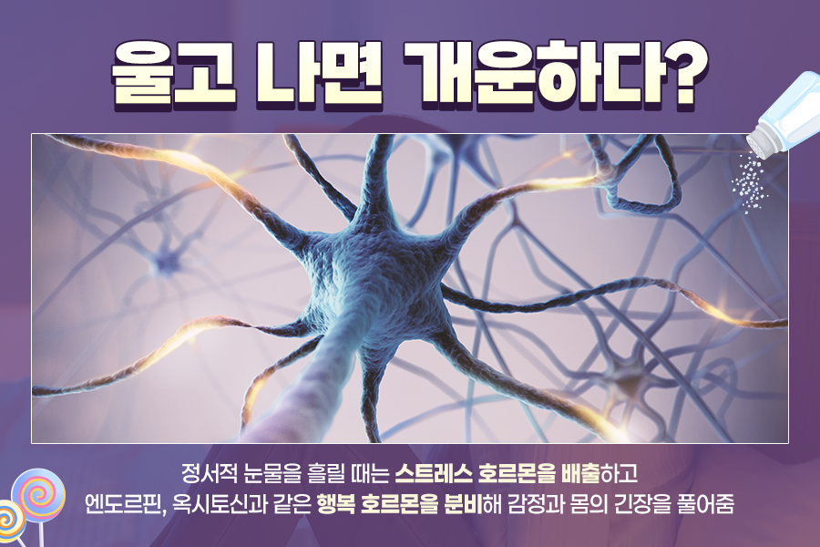 울고 나면 마음이 한결 가벼워지는 것도 단순한 기분 탓이 아닙니다. 정서적 눈물은 스트레스 호르몬을 배출하고, 부교감신경을 활성화해 심신을 안정시키는 역할을 하는데요. 또한 엔도르핀, 옥시토신 같은 행복 호르몬이 함께 분비되어 감정과 몸의 긴장을 동시에 풀어주죠.