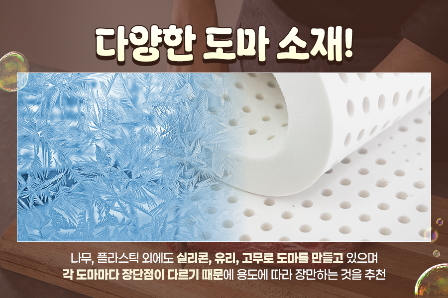 그런데 여러 소재 중 어떤 도마가 더 위생적일지 여러분은 알고 계시나요? 오늘은 다양한 도마 소재에 대해 파헤쳐 보겠습니다!
