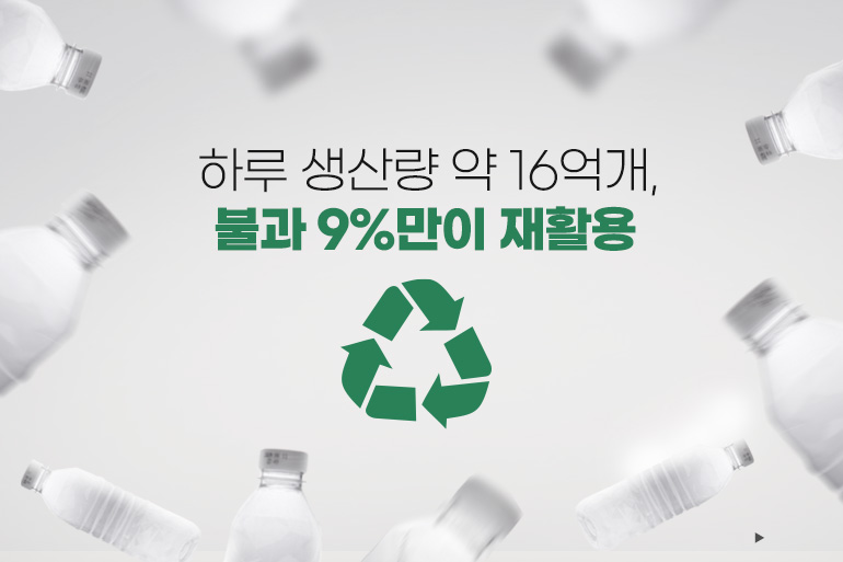 하루 생산량 약 16억개, 그리고 불과 9%만이 재활용되고 있는 페트병