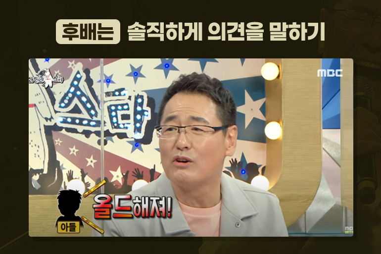 우선, 후배는 candor 하게 의견을 말해야 합니다. candor는 ‘무조건적인 솔직함’을 뜻하는데요, 만일 권인하 님의 아들이 아빠가 상처 받을까봐 ‘아빠 방식대로 노래해도 좋아’라고 했다면, 아마 그는 옛 세대만 아는 가수로 남았을 겁니다. 다만, candor에는 중요한 전제가 있습니다. 서로에게 ‘애정’과 ‘믿음’이 있어야 합니다. ‘상대가 내가 더 잘 되라고 이런 말을 하는구나.’라는 애정과 믿음이 없다면 기분나쁜 ‘지적질’에 그칠테니까요.