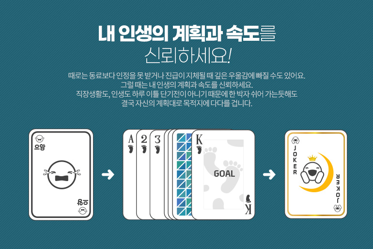 직장상사에게 부정적인 피드백을 받았을 때 오래도록 자책하는 사람들이 있어요. 때로는 동료보다 인정을 못 받거나 진급이 지체될 때 깊은 우울감에 빠질 수도 있어요. 그럴 때는 내 인생의 계획과 속도를 신뢰하세요. 직장생활도, 인생도 하루 이틀 단기전이 아니에요. 때로는 한 박자 쉬어 가는듯해도 결국 자신의 계획대로 목적지에 다다를 겁니다. 그동안 잘해왔잖아요? 그런 나에게 나 자신의 응원이 필요한 시점, 바로 지금입니다.