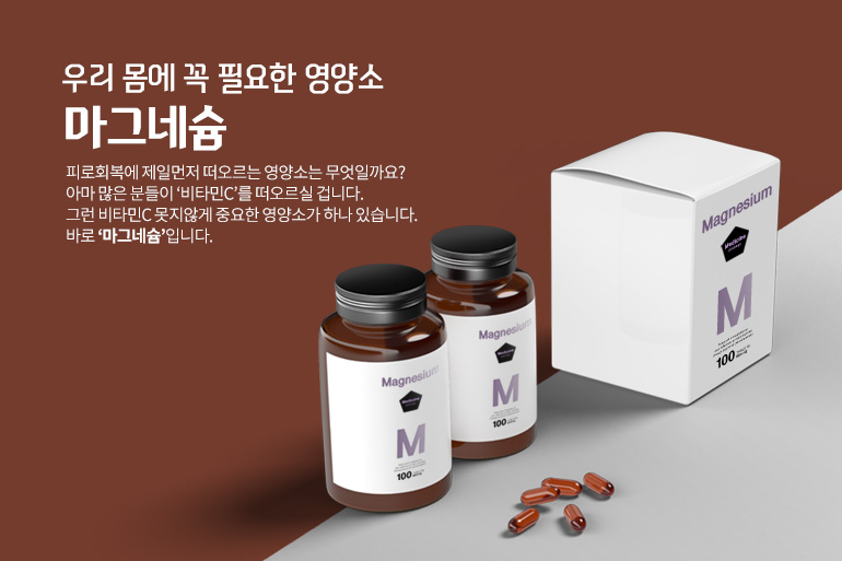 피로회복에 제일먼저 떠오르는 영양소는 무엇일까요? 아마 많은 분들이 ‘비타민C’를 떠오르실 겁니다. 비타민C는 세포기능에 매우 중요한 영양소입니다. 그런 비타민C 못지않게 중요한 영양소가 하나 있습니다. 바로 ‘마그네슘’입니다. 오늘은 우리몸에 꼭 필요한 영양소인 마그네슘에 대해 알아보겠습니다.