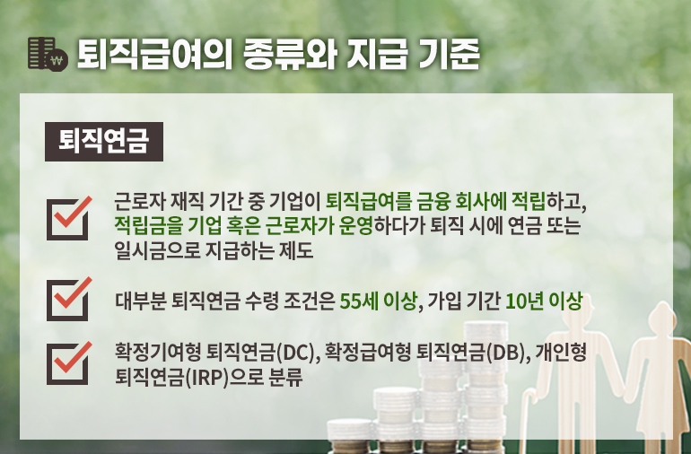 ● 퇴직급여=퇴직금? 퇴직급여의 종류와 지급 기준