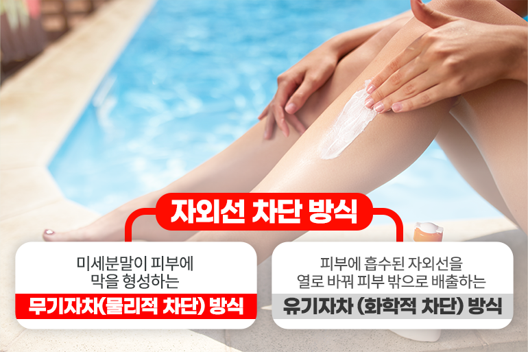 자외선을 차단하는 방법은 미세분말이 피부에 막을 형성하는 무기자차(물리적 차단) 방식과 피부에 흡수되는 자외선을 열로 바꿔 피부 밖으로 배출하는 유기자차(화학적 차단) 방식이 있는데요. 물리적 차단 방식을 사용하는 대표적인 성분이 바로 징크옥사이드와 티타늄디옥사이드예요. 두 성분 모두 피부에 막을 형성해 자외선을 차단하기 때문에 자외선을 즉시 차단하는 효과가 있고, 피부 자극이 적다는 것이 특징이죠.