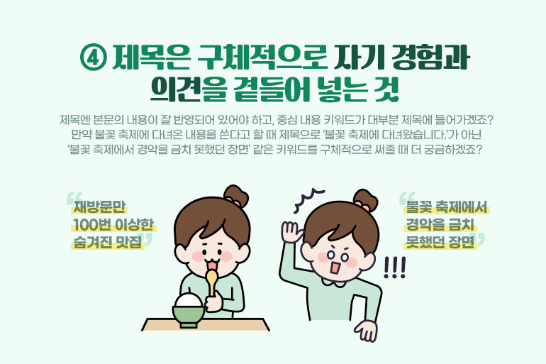 4. 제목은 구체적으로 자기 경험과 의견을 곁들어 넣는 것입니다.