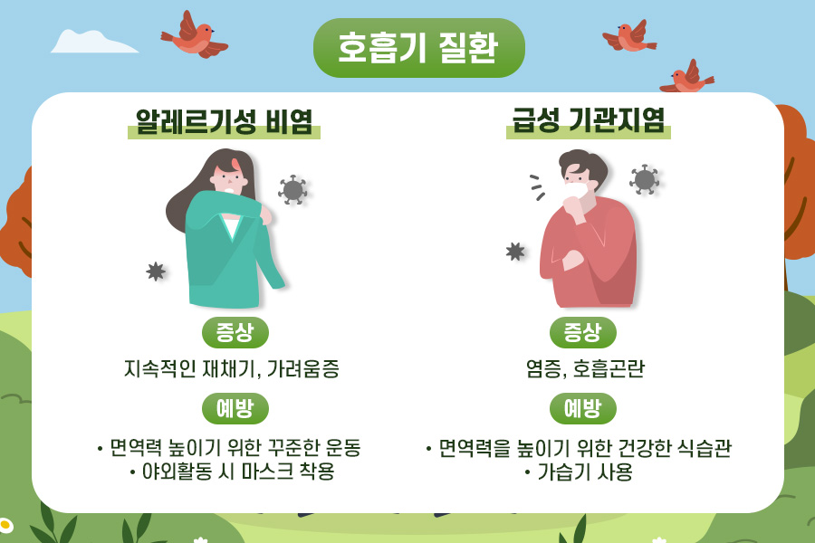 호흡기 질환은 가을철 여러 가지 이유로 발생하는 감기 바이러스성 질병입니다.