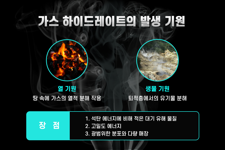 생물 기원이란 심해 퇴적층에서 유기물이 분해되면서 생성되는 가스와 물이 반응하여 생성된 것을 말합니다.