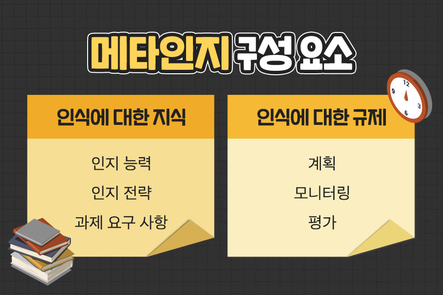 그렇다면 이러한 메타인지는 어떤 요소로 구성되고 작동하는 것일까요?