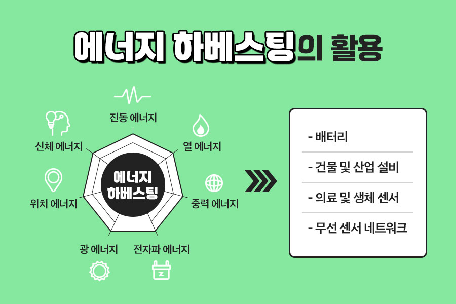 에너지 하베스팅은 진동뿐만 아니라 다양한 에너지로 활용 가능한 기술인데요.